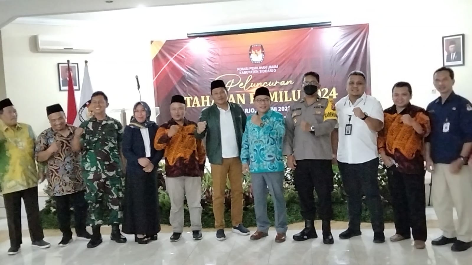 Komisi Pemilihan Umum (KPU) Kabupaten Sidoarjo mengikuti kegiatan peluncuran tahapan pemilu serentak 2024 yang dilaksanakan secara live oleh KPU RI.