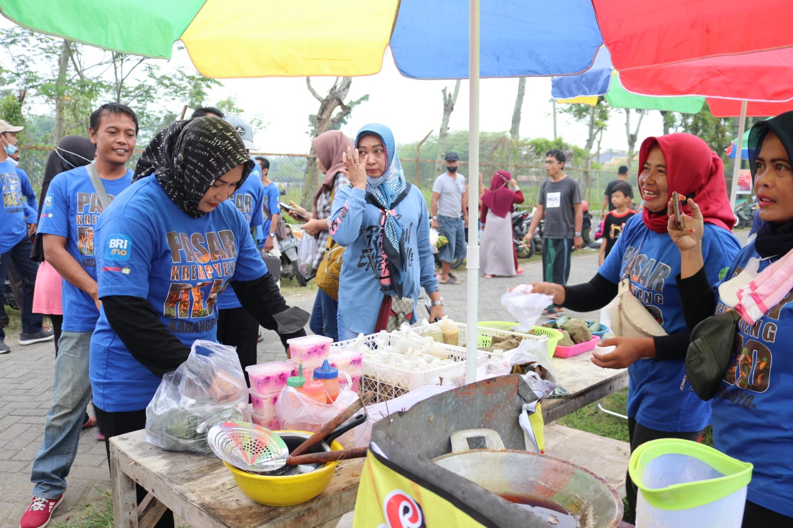 Disini, Wabup yang akrab disapa Mbak Etik ini tampak antusias berkeliling memantau aktifitas jual beli produk UMKM yang dilakukan masyarakat, sembari ikut berbelanja dan sarapan pagi.