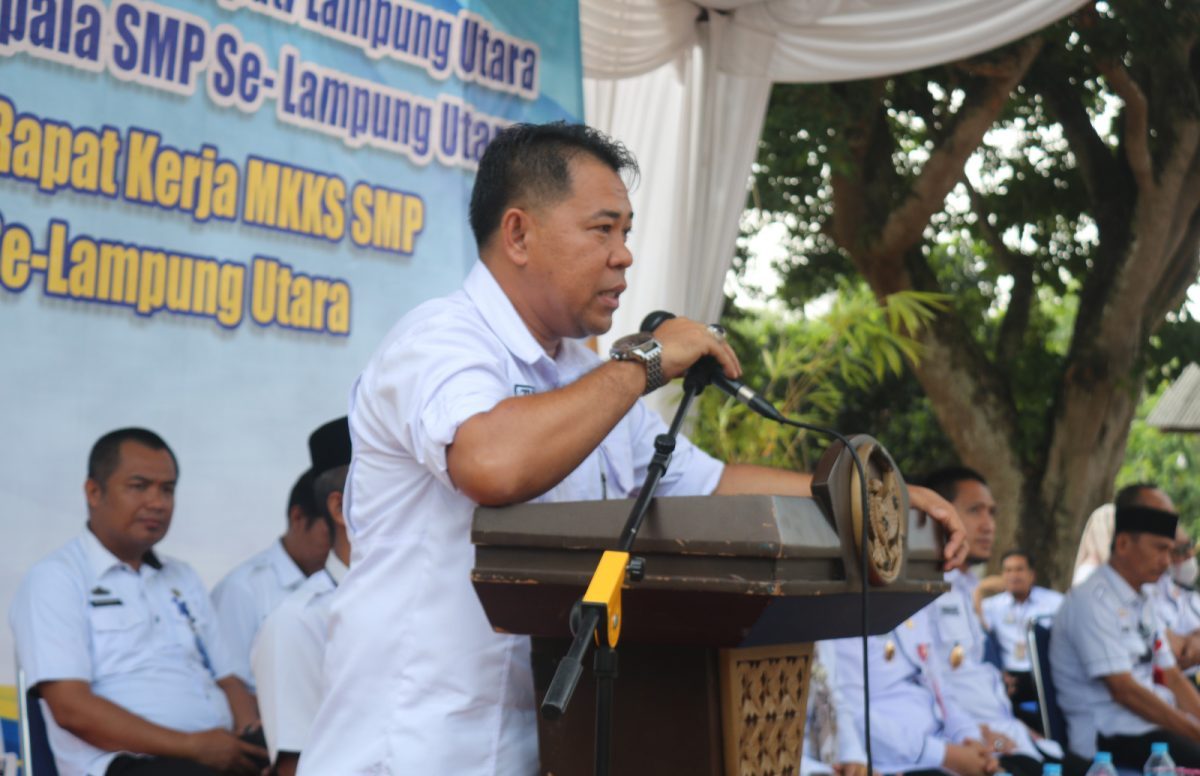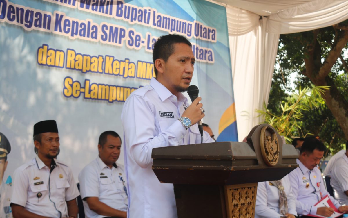 Wakil Bupati Lampung Utara, Ardian Saputra Silaturahmi dengan Kepala SMP sekaligus melangsungkan Rapat Musawarah Kerja Kepala Sekolah (MKKS) SMP se-Lampura. Acara berlangsung di SMPN 9 Kotabumi. (23/08/2023).