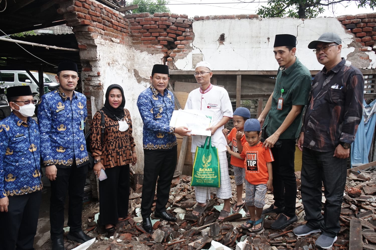 “Kami Pemerintah Daerah Kabupaten Sidoarjo dan DPC PKB Sidoarjo memberikan bantuan uang tunai sebesar Rp. 30 juta, yakni Rp. 10 juta dari Badan Amil Zakat Nasional Kabupaten Sidoarjo dan Rp. 20 juta dari DPC PKB Kabupaten Sidoarjo, serta bantuan sosial sembako,” katanya.