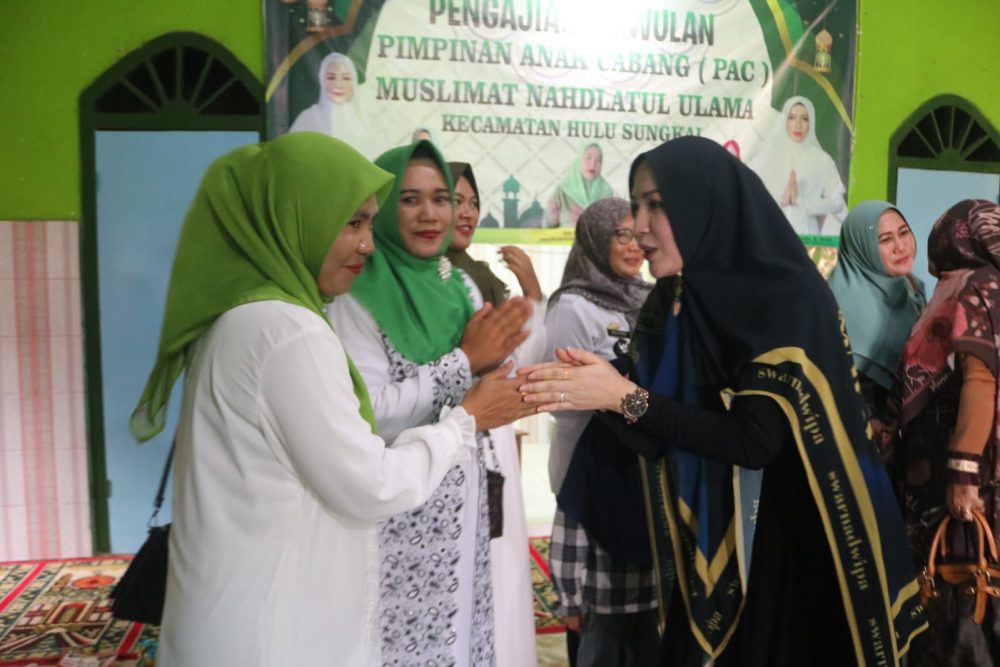 Wakil Ketua TP-PKK Kabupaten Lampung Utara Hj. Devriyana Marda Ardian Saputra, SKom., menghadiri Pengajian Triwulan Muslimat Nadlatul Ulama (NU) di Desa Tanjung Harapan. Kegiatan terpusat di Masjid Al Muhajirin Kecamatan Hulu Sungkai, Rabu (26/07/2023).