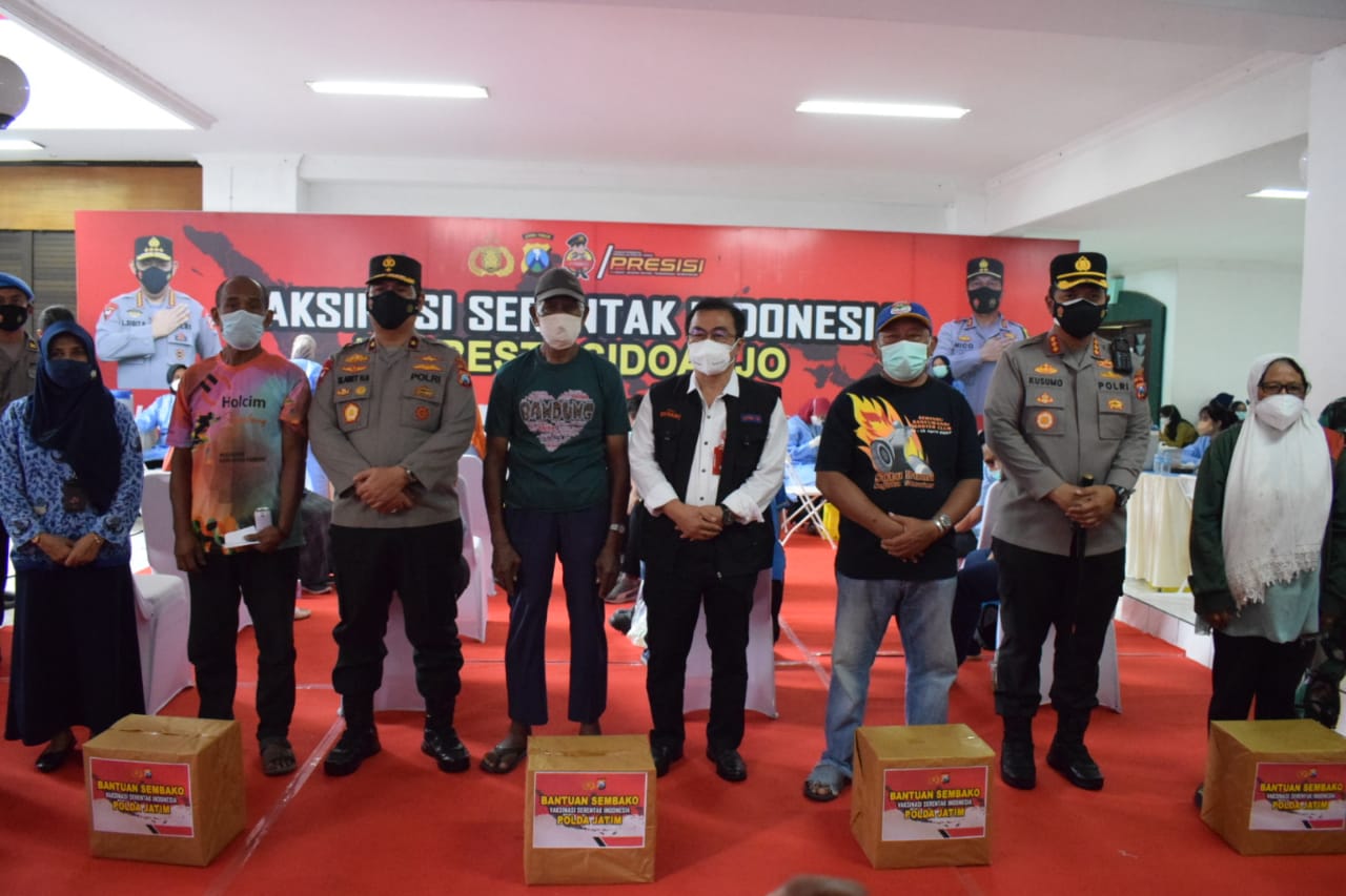 Mengikuti kegiatan vaksinasi serentak nasional tersebut, Wakapolda Jawa Timur Brigjen Pol. Slamet Hadi Supraptoyo didampingi beberapa pejabat utama Polda Jatim dan Kapolresta Sidoarjo Kombes Pol. Kusumo Wahyu Bintoro, hadir dalam zoom meeting vaksinasi serentak bertempat di lobi Stadion Gelora Delta Sidoarjo.