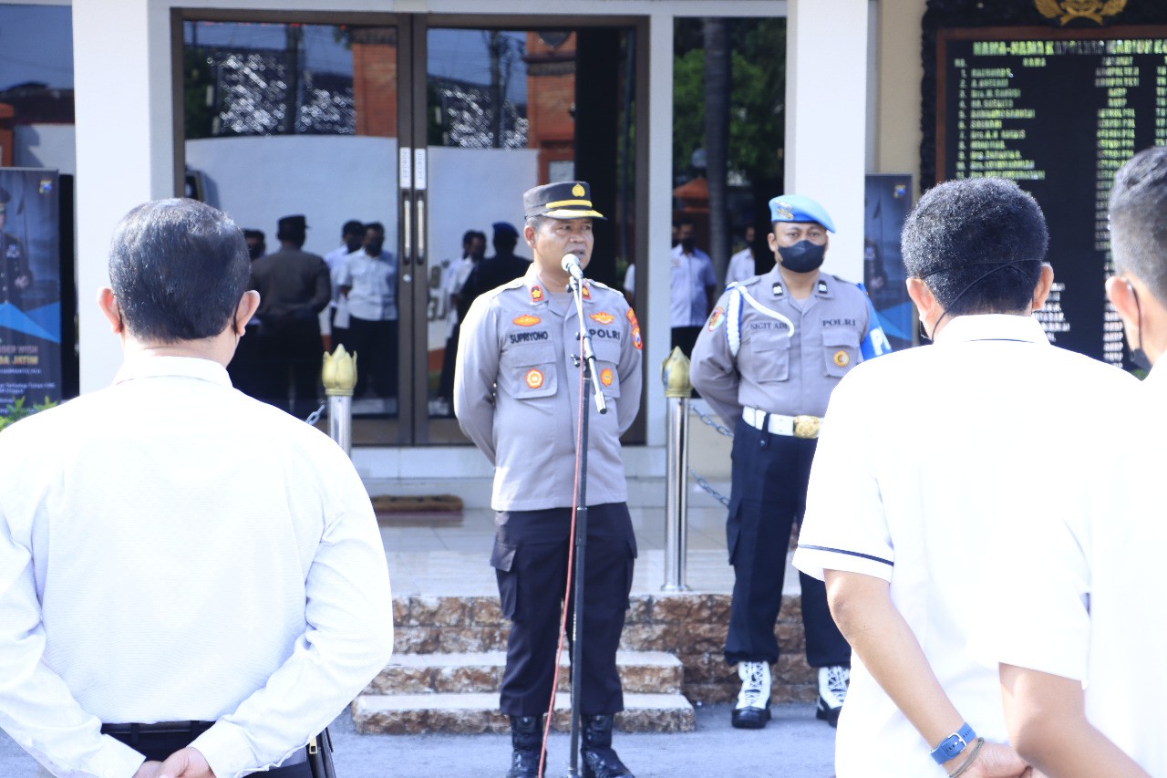 Turut hadir dalam pelaksanaan kegiatan apel pagi yaitu para PJU, Kapolsek, Perwira serta bintara dan ASN Polres Madiun Kota.