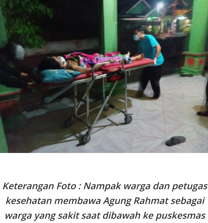 Agung Rahmat warga Dusun Blentreng Gondang yang miskin dan sakit itu, langsung dibawah dengan memakai mobil ambulan oleh warga dan tenaga kesehatan atau nakes ke Puskesmas terdekat, untuk mendapatkan penanganan perawatan kesehatan lebih lanjut.