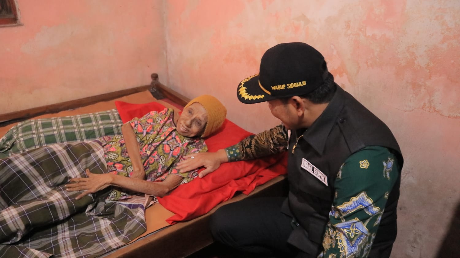 Selasa, (3/1/2023), Seorang nenek berusia 84 tahun bernama Rusminah warga Desa Watu Tulis Kecamatan Prambon yang mengalami stroke telah dijenguk Wakil Bupati Sidoarjo H. Subandi SH. Kedatangan Wabup Sidoarjo tersebut bertujuan memberi Bantuan Sosial/Bansos. Selain itu juga membantu untuk melakukan perekaman E KTP kepadanya. Rusminah hidup berdua bersama anaknya yang berkategori warga tidak mampu.