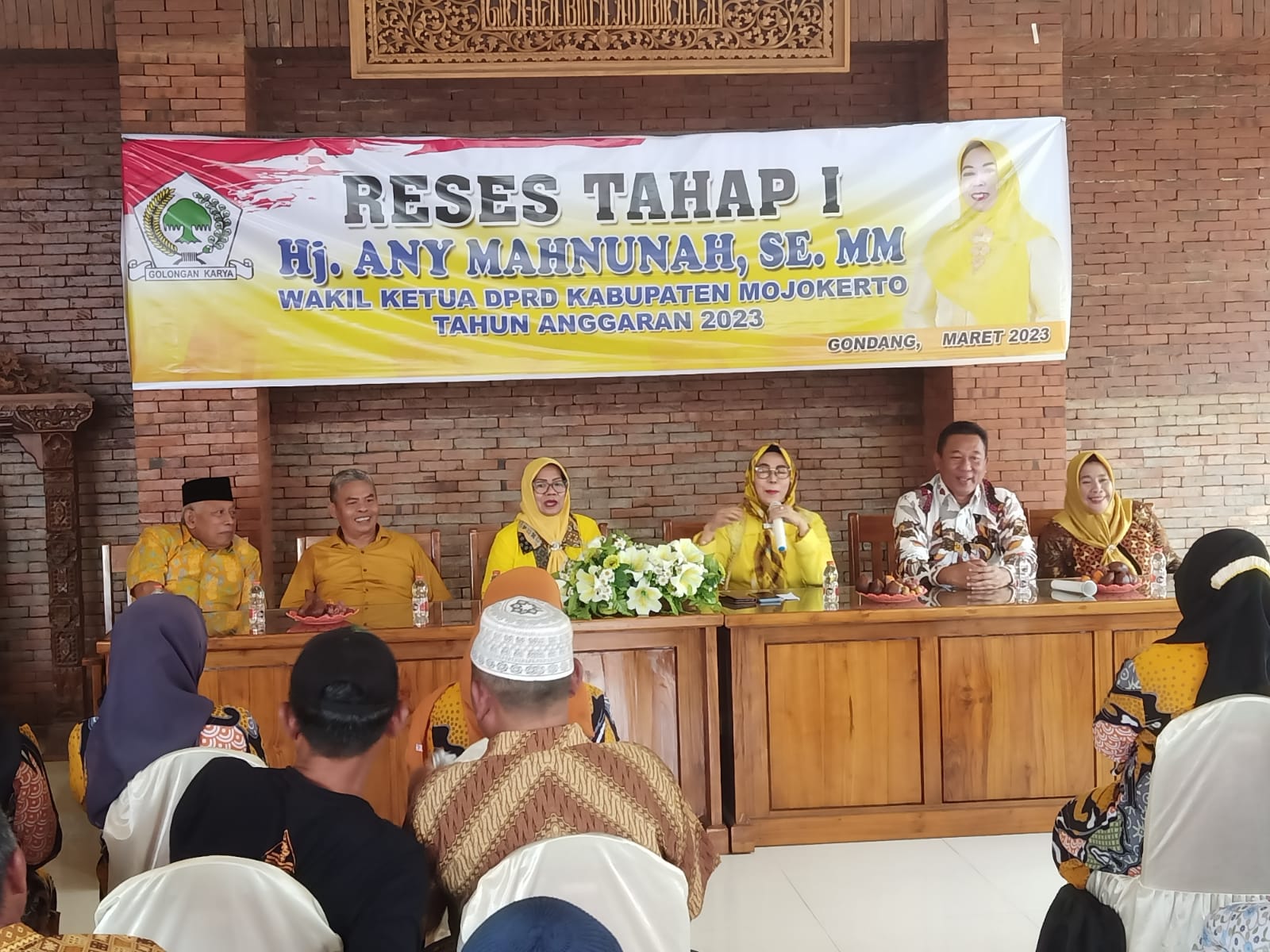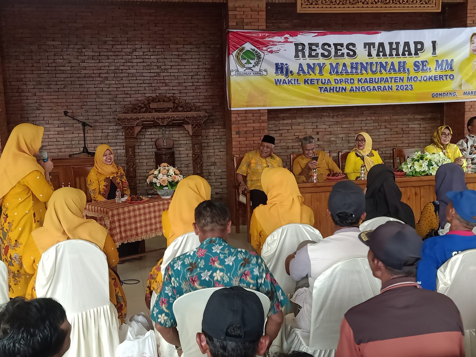 Anggota DPRD Kabupaten Mojokerto yang menjabat sebagai Wakil Ketua DPRD Kabupaten Mojokerto Hj. Any Mahnunah SE, MM, mengelar acara Serap Aspirasi Masyarakat ( RESES ) tahap I tahun 2023 di Pendopo Balai Desa Kalikatir Kecamatan Gondang, Jumat ( 17 / 03 / 2023 ).