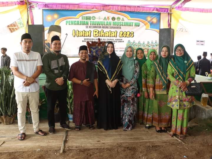 Tim Penggerak (TP) Pemberdayaan dan Kesejahteraan Keluarga (PKK) Kabupaten Lampung Utara menghadiri Pengajian Akbar Triwulan Muslimat NU Kecamatan Abung Surakarta dan Halal Bihalal.