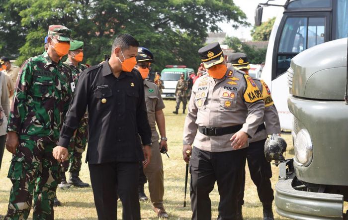 Wali Kota Kediri Abdullah Abu Bakar memimpin apel gelar pasukan dan peralatan dalam rangka antisipasi menghadapi bencana alam tahun 2021 di wilayah Kota Kediri yang dilaksanakan di Lapangan Gajah Mada, Senin (25/10).