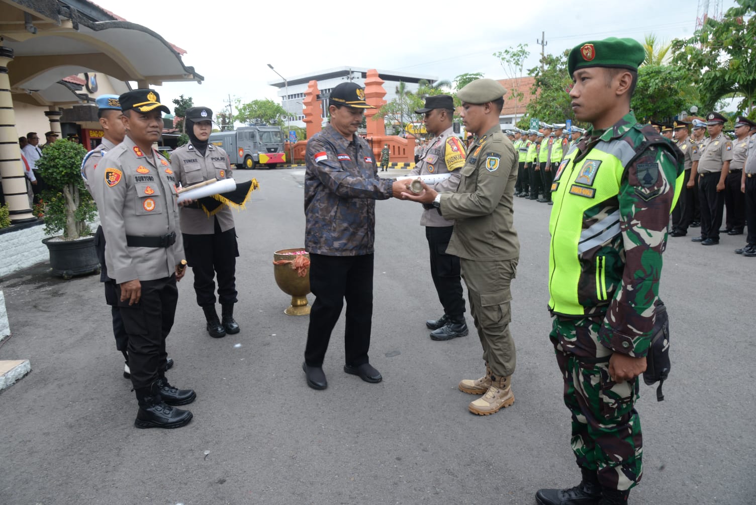 Dalam apel gelar pasukan tersebut juga diserahkan secara simbolis kentongan kepada perwakilan, pelaksanaan kegiatan memukul kentongan tersebut nantinya di laksanakan secara serentak se-Jawa Timur pada Pukul 00.00 WIB pada malam pergantian tahun 2022 dan tahun 2023 untuk mendapatkan catatan pada Rekor MURI.