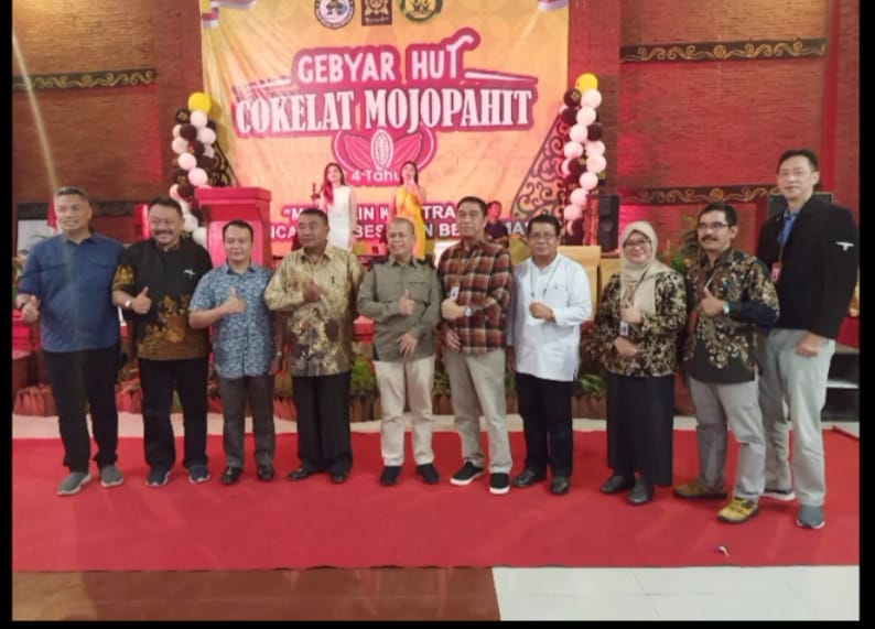 Pengelola Wisata Desa BMJ Mojopahit Mojokerto KI Mulyono SH MM photo bersama para pejabat Propinsi Jawa Timur di acara Ultah pabrik Cokelat ke 4