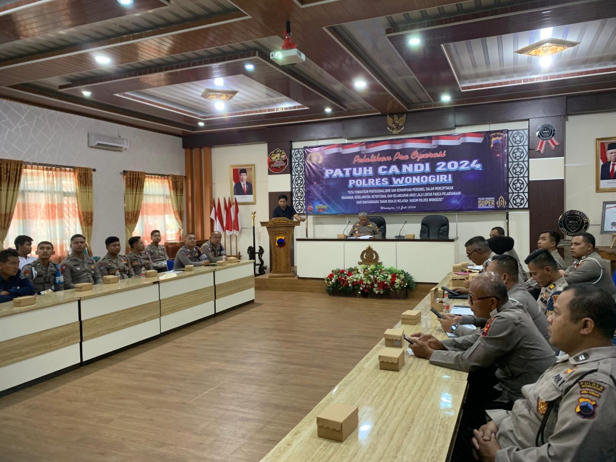 Polres Wonogiri menggelar Latihan Pra Operasi atau Latpraops Patuh Candi 2024. Latpraops yang mengambil tempat di Aula Sanika Satyawada Polres Wonogiri ini diikuti oleh para Kasatgas berikut seluruh personel yang terlibat operasi. Jumat (12/7/2024).