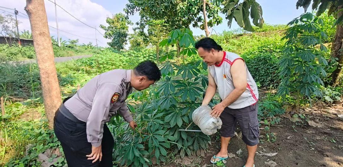 Dalam rangka mendukung program ketahanan pangan Polresta Sidoarjo Polda Jatim yang bergizi dan berkelanjutan, Bhabinkamtibmas Desa Permisan, Kecamatan Jabon, Kabupaten Sidoarjo, Aiptu F. Rozi, melaksanakan kegiatan pengecekan lahan pekarangan warga yang dimanfaatkan sebagai kebun tanaman singkong, Rabu (18/6/2025).