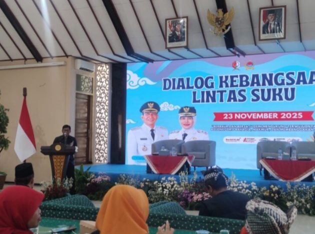 Pemerintah Kabupaten (Pemkab) Bojonegoro melalui Badan Kesatuan Bangsa dan Politik (Bakesbangpol) menggelar Dialog Kebangsaan 2025 di ruang Angling Dharma lantai 2 Gedung Pemkab Bojonegoro, Minggu (23/11/2025). Acara ini bertujuan menguatkan persatuan, kerukunan, dan toleransi antar suku dan budaya di Kabupaten Bojonegoro. Hal ini ditandai dengan penandatanganan ikrar deklarasi damai lintas budaya.