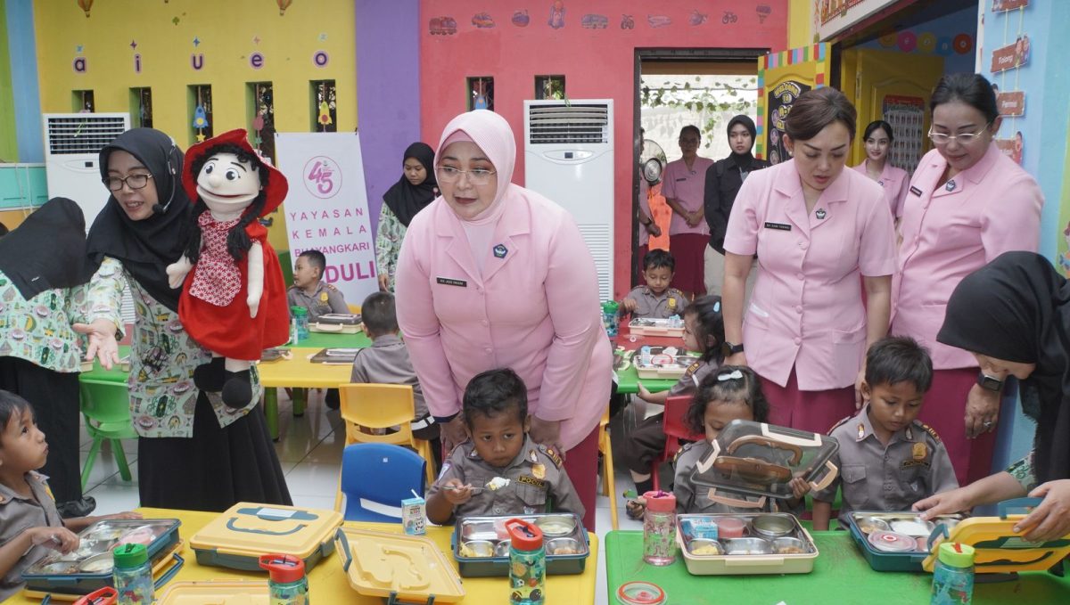 Kepedulian terhadap anak-anak dilakukan Ketua Pengurus Yayasan Kemala Bhayangkari (PYKB) Daerah Jawa Timur Ny. Ade Imam Sugianto, dengan membagikan makanan bergizi di TK Kemala Bhayangkari 83, Sidoarjo, Kamis (13/2/2025).
